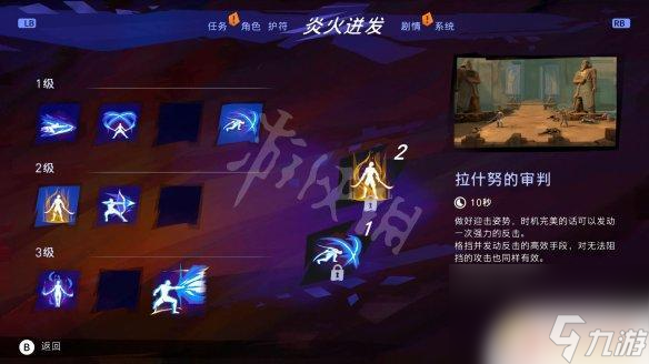 剧情结束后,环刃能力强化,可以解锁新的火焰爆招“拉什努的审判”(很强的反击技能,非常好用)。
